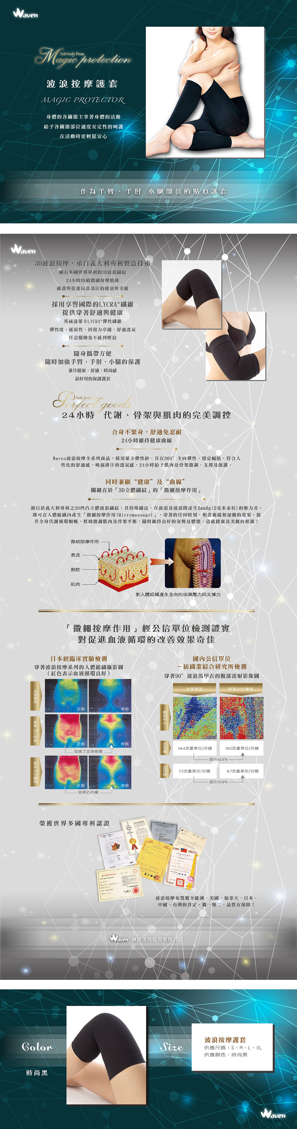 *符合人體工學壓力、特殊織法與彈性設計,服貼舒適、活動自如、不易鬆脫移位,不會過度緊繃。