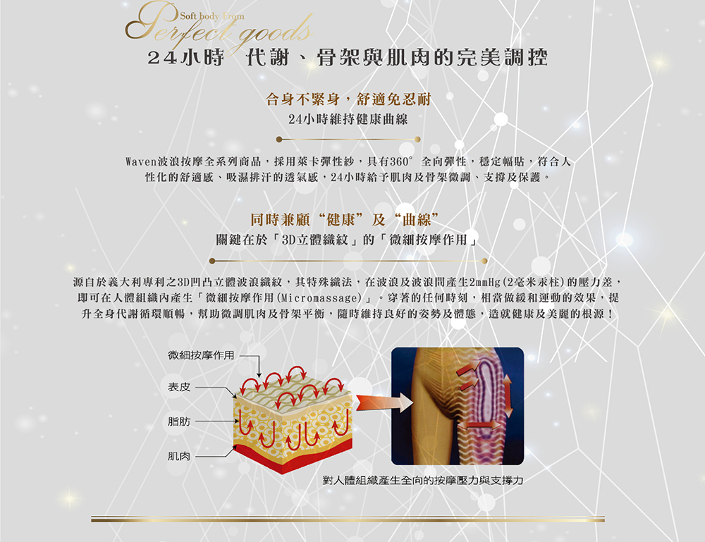 -獨特的波浪紋織法,按摩修飾腰腹曲線。