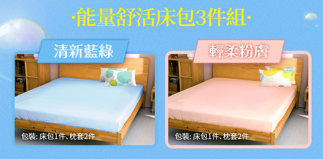 能量舒活床包、枕套的布片特別添加60%高科技纖維紡紗